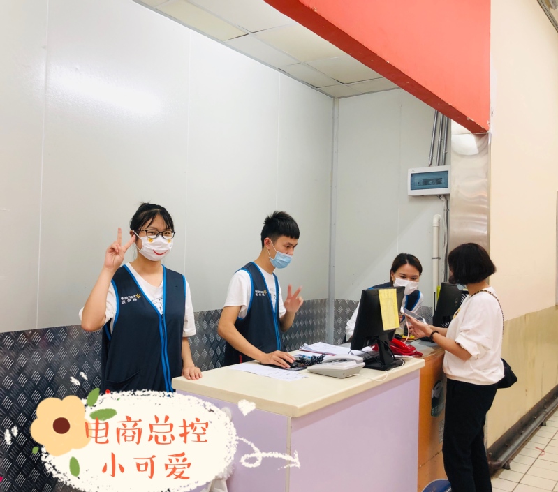 在沃尔玛电商运营中心的实习生为顾客服务