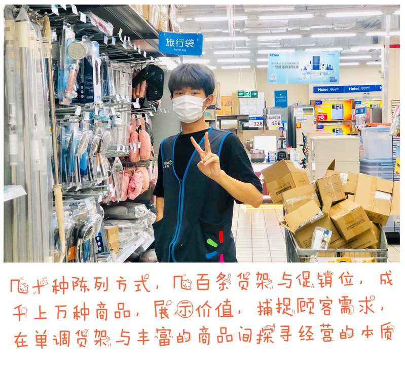 正说着,连锁19302班朱国旗凑上来,微笑着点头同意:“我们在学校学到了商品陈列知识和卖场布局知识,让我在实习中迅速上手,陈列商品、整理货架、仓库理货,爬货梯,核对库存都不在话下。在沃尔玛实习这段时间,我体会到了从校园到职场跨越的不易。面对几十种陈列方式,几百条货架与促销位,成千上万种商品,我在单调的货架与丰富的商品之间不断转换,用心学习如何展示价值、捕捉顾客需求,慢慢领悟经营的本质。”