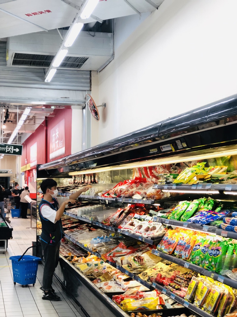 连锁经营管理专业实习生整理货架、清点商品数量