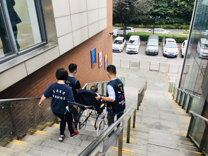 连锁19303班王雨讲到,在一次外围迎宾过程中,看见一位年轻的妈妈一手推着婴儿车,一手吃力地提着装满商品的购物袋,站在楼梯前左右为难。王雨马上喊来实习的伙伴们帮忙抬婴儿车下楼,那位顾客很感动,一直说着感谢的话......