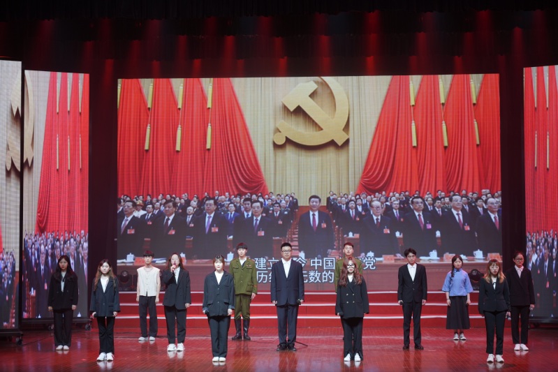 青年教师代表杨朝林、耿小虎和陈俞安带来的《追寻》表达出了青年教师对党忠心和如磐信念。