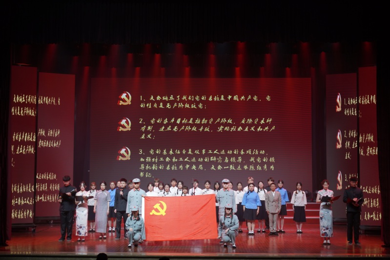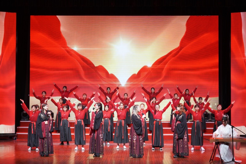 会计20201团支部带来合唱《祖国,我亲爱的母亲》、财会类20308团支部选送的朗诵《英雄赞歌》、财会类20301团支部表演舞台剧《雾中灯塔》、电商类20304团支部带来的《歌唱我的祖国》,抒发青年学子对祖国母亲的赤子深情,讲述在至暗时刻里,中国共产党为劳苦大众带来黎明曙光领导人民走向光明的恢弘历史。