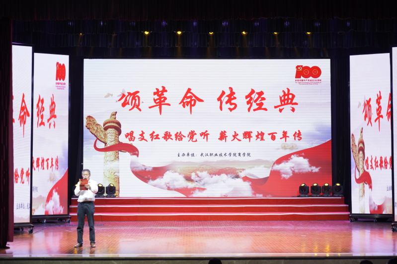 当晚七点整,随着《唱支山歌给党听》伴奏的响起,商学院教师们改编歌词,引入本次活动的主题——唱支红歌给党听 薪火辉煌百年传。看着平时在讲台上的老师登上舞台,台下的学子们响起雷鸣般掌声,晚会正式拉开序幕。