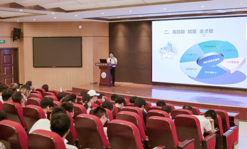 嫦娥集团董事长林国华为学生作题为《为命运耕一条好赛道》专题报告,他鼓励学生以职业为荣,历练技能,成长为全能型的营销人才。林国华为学生详细介绍全能型直播人才培育计划,并表示,未来嫦娥集团将携强大的业界专家联合智能商务学院教师团队,建设一支在直播赛道中善于拼搏的全能型营销人才梯队。