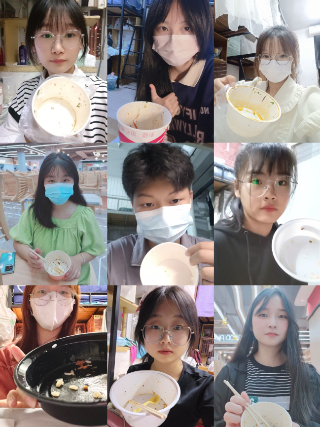“看看我的两荤两素,被我扫荡一空,这次的寝室光盘达人非我莫属了。”商学院财会类22303班王雨欣一边说道,一边打开朋友圈让家人、同学们看看她们寝室晒出的光盘成果。