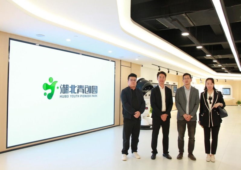 在湖北青创园(光谷)示范园副总经理潘龙及博菲盛科技有限公司总经理张雄引领下,胡辉、周敏参观了园区青展会,了解园区规划、企业孵化情况,园区内专精特新企业的发展及取得的荣誉。潘龙介绍,湖北青创园既是以“创业青年聚焦、创业氛围浓厚”为特点的青年创业阵地集群,也是以实现“全链条孵化,全周期培育、全过程服务”的青年创业综合服务平台。