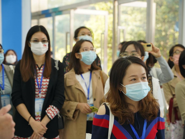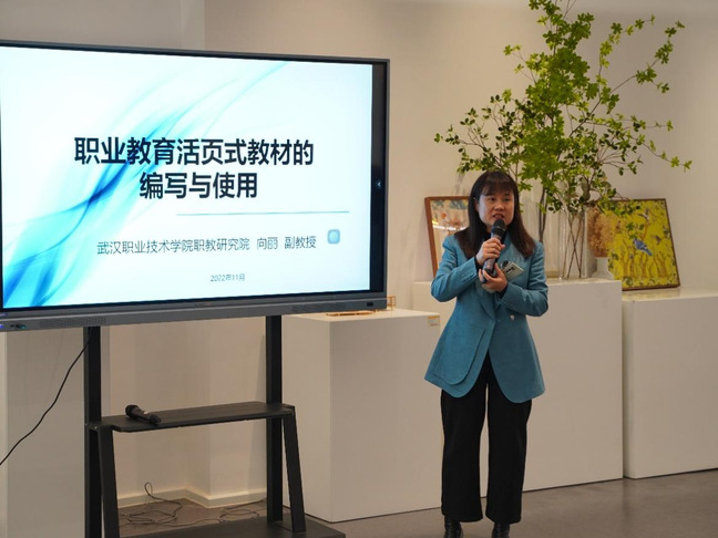 随后,研修班学员前往学校众创空间,参观并了解武职学子“双创”项目开展情况。期间,校职教研究院向丽老师就《职业教育活页式教材的编写与使用》与学员们开展了互动交流。