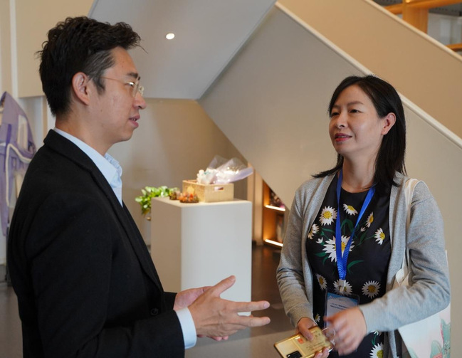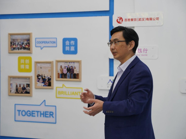 商学院副院长胡辉向研修班学员介绍众创空间项目孵化情况