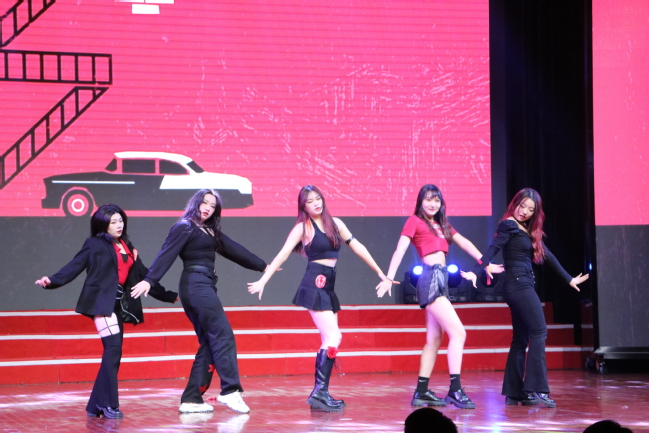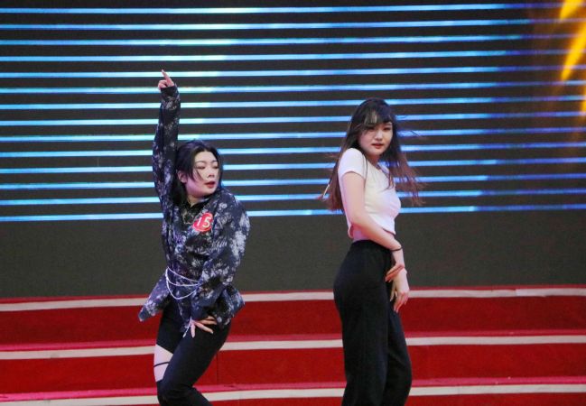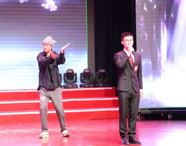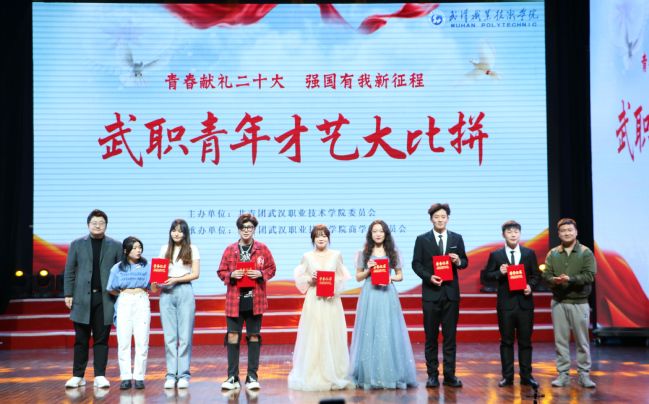 校团委书记黄晶晶、副书记余娜,商学院分党委副书记敖锋、学生工作办公室主任柯松桥与现场观众一起欣赏激动人心的比赛。 袁昌宁、耿小虎、肖愚、夏露露、吴宇铮等5名有艺术专业功底的老师担任决赛评委。