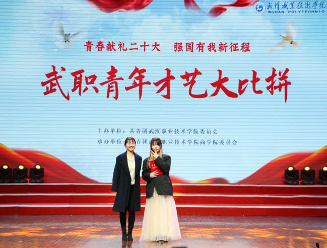 校团委副书记余娜为“才艺之星”特等奖获得者、艺术设计学院李思燃颁奖