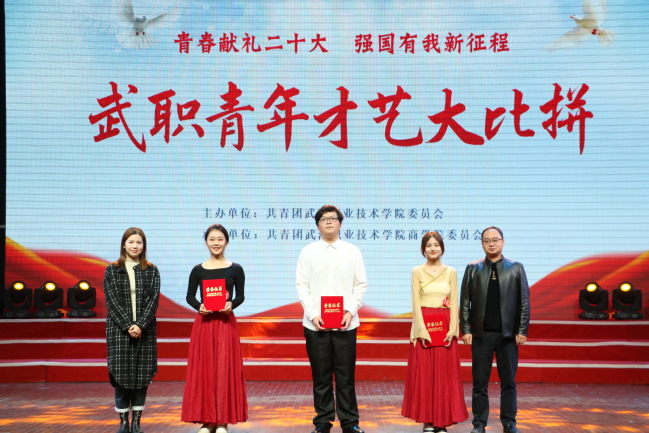 “巅峰之夜—武职青年才艺大比拼”总决赛成绩揭晓后,余娜、敖锋、柯松桥以及五位总决赛评委相继上台,为“才艺之星”获奖选手颁奖。在全场师生的欢呼声中,第四届“武职青年才艺大比拼”圆满落下帷幕。