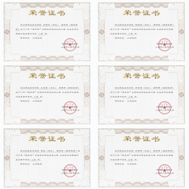 武职网讯(通讯员 周倩倩 王曦)2022年“畅享杯”全国数字商业技能大赛于2023年1月4日在云端落幕。武职学子踊跃参加挑战,在企业数字化管理沙盘赛项中,荣获高职组赛道个人二等奖5项、三等奖1项。