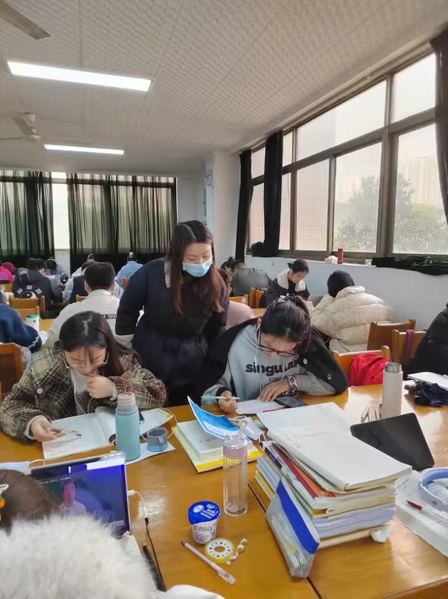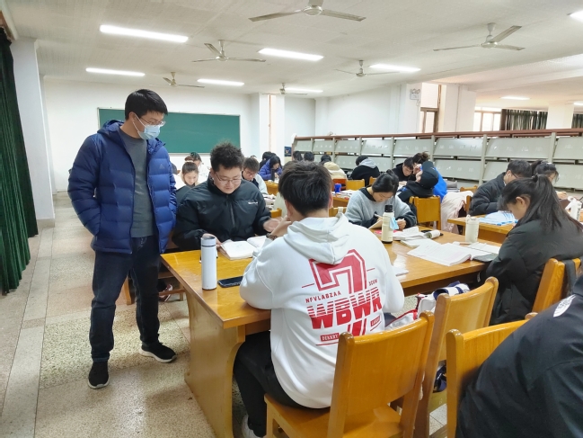 2月的图书馆座无虚席,学习氛围浓厚,商学院老师们细心关注专心备考的学生。在走廊,老师们与休息的学生深入交谈,了解到目前毕业生面临着就业和备考的双重心理压力。