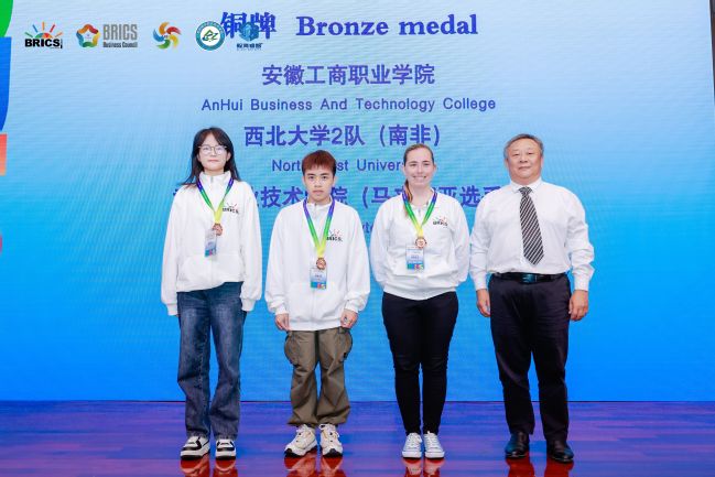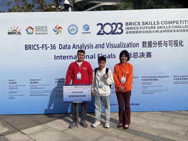 武职网讯(通讯员 龙珍妮)11月6日,2023金砖国家职业技能大赛数据分析与可视化赛项国际总决赛在珠海落幕。武汉职业技术学院马来西亚留学生郑奉才荣获一等奖摘得铜牌,商学院副院长胡辉荣获“优秀指导专家”称号。