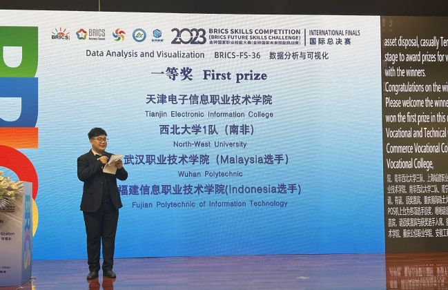 2023金砖国家职业技能大赛中国分赛区数据分析与可视化赛项由南非高等教育与培训部、金砖国家工商理事会、南非豪登省政府主办,金砖国家工商理事会技能发展工作组、南非高等教育与培训部媒体信息通信技术署承办。大赛聚焦高端制造、数字经济、新产业、新业态、新技术等重点领域,旨在提升职业院校师生在创新、协调、组织、合作等方面的能力,丰富职业院校和企业交流与合作的内容,培养金砖国家国际化高质量技术技能人才与人文交流人才。