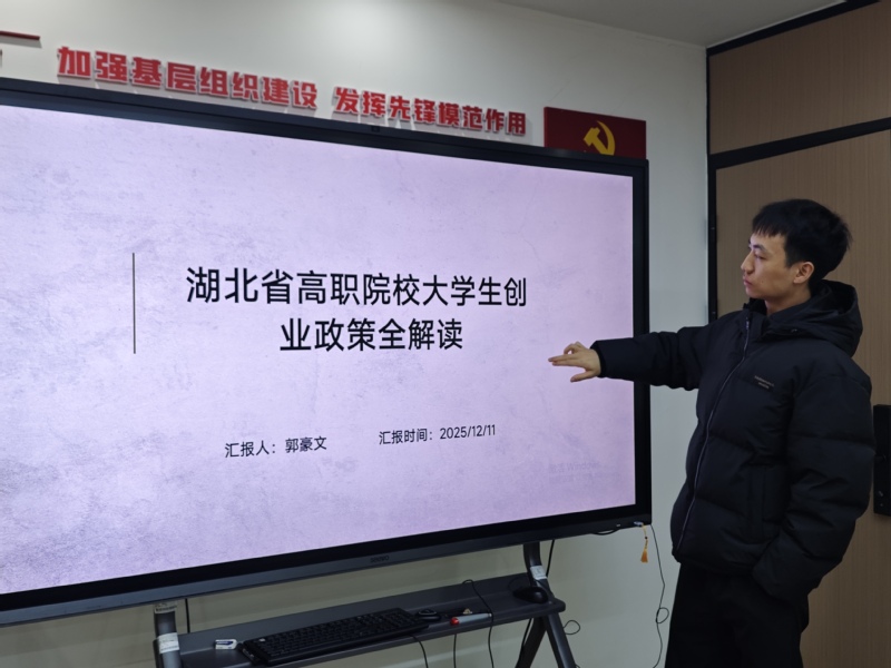 (通讯员:郭豪文)2025年12月11日,商学院举办湖北省高职院校大学生创业政策全解读主题活动。本次活动系统梳理了2025版创业政策体系,通过详实的政策解读和成功案例分享,为高职学子创业之路提供全方位指导。