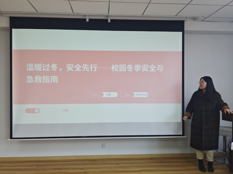 宣讲会紧密围绕冬季校园生活的核心风险点展开。主讲人王聪老师结合详实案例,系统剖析了冬季面临的“四重风险”:极端天气、取暖隐患、出行挑战与健康威胁,引导学生树立“主动防范”的安全观。内容涵盖防寒保暖科学方法、宿舍用电与火灾防范黄金准则、冰雪路面“企鹅步”出行技巧、冬季运动损伤预防及高发疾病应对策略,全面覆盖了学生冬季学习生活的各个场景。