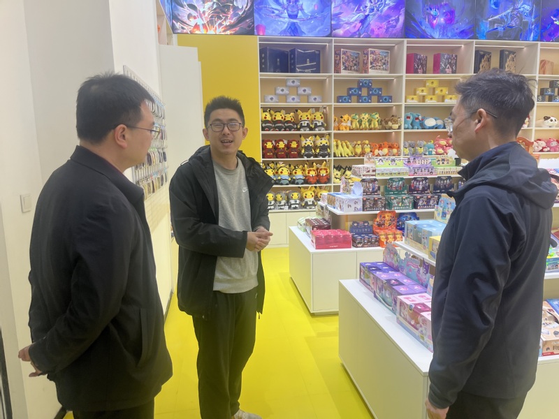 在文创潮玩体验馆,学院一行考察了“桌游+盲盒+IP体验”的线下融合业态。该模式以IP为核心,实行线上线下联动运营,为学院在新零售、电商运营等课程改革和学生实战方面提供了参考。