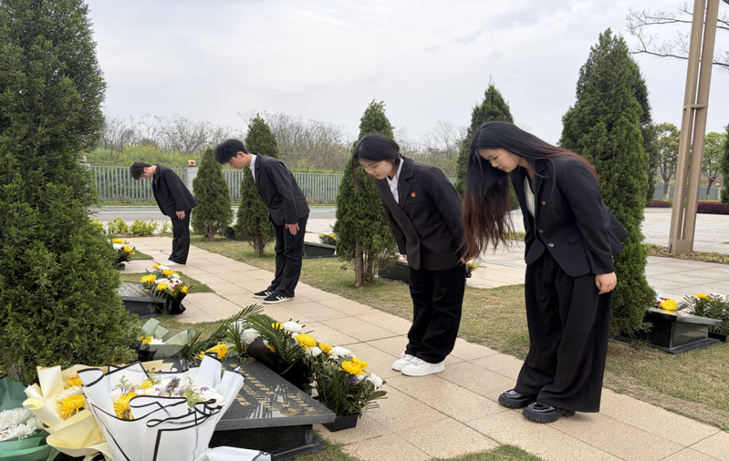 随后,祭扫活动正式开启。入党积极分子代表们依次缓步走向烈士纪念碑,郑重敬献鲜花。一朵朵洁白的花朵,承载着后辈对先烈的无尽敬意;一次次深深的鞠躬,诉说着青年学子对革命精神的永恒传承。献花过程中,大家步履沉稳、神情庄重,用最质朴的方式表达对革命先烈的缅怀。