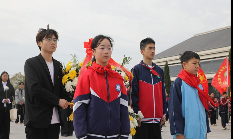 活动现场,苍松翠柏凝翠,革命烈士纪念碑巍然矗立,庄严肃穆的氛围萦绕全场。全体学生代表整齐列队,怀着对先烈的无限崇敬与深切缅怀,向革命烈士纪念碑默哀致敬。三分钟的默哀中,风过林梢似有英烈回响,每一位学子皆凝神静立,将对革命先辈的追思融入静默,感念其用热血与生命铸就的和平岁月。