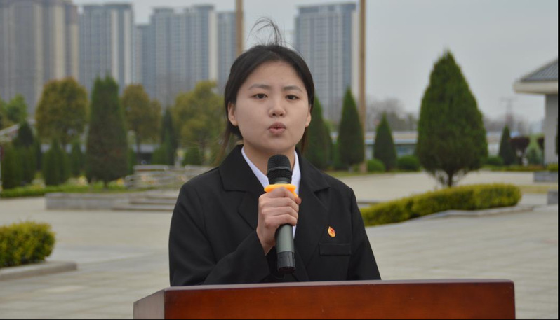 默哀仪式结束后,数智商务学院学生会主席蒋雯艳同学登台发言。她以真挚的情感、铿锵的语调,回顾了革命先烈们为民族独立、人民解放抛头颅、洒热血的光辉事迹,深入阐释了英烈精神跨越时空、永不过时的时代价值。“先烈们用生命诠释了忠诚与担当,作为新时代数智商务学子,我们当以先烈为榜样,将红色基因融入血脉,把青春奋斗融入国家发展和民族复兴的伟大征程。”蒋雯艳同学的发言引发全场共鸣,赢得阵阵热烈掌声。